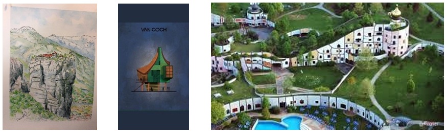 前述の義務教育学校はビジネス建築、以下の画像に示すものはコンセプチュアル建築と仮に名付けます。後者は、前衛的・実験的芸術につながります。青年期も過ぎた30歳から45歳の壮年期にこれに魅せられ、その真似事に相当の時間とお金を費やしました。これは、いわば「病」か「岡ぼれ」です。あげく中途半端な挫折に終わりました。先述の学校二回卒業という一回目のまわり道に加えて、二回目のまわり道をおかしてしまったのです。時はバブル期と重なりますし、建築の歴史的には近代主義に反発するように生まれてきたポストモダニズム、ネオポストモダニズム運動期とも重なります。